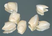 Zirkonrohlinge werden als Kronengerüst verwendet und mit Keramik verblendet. -